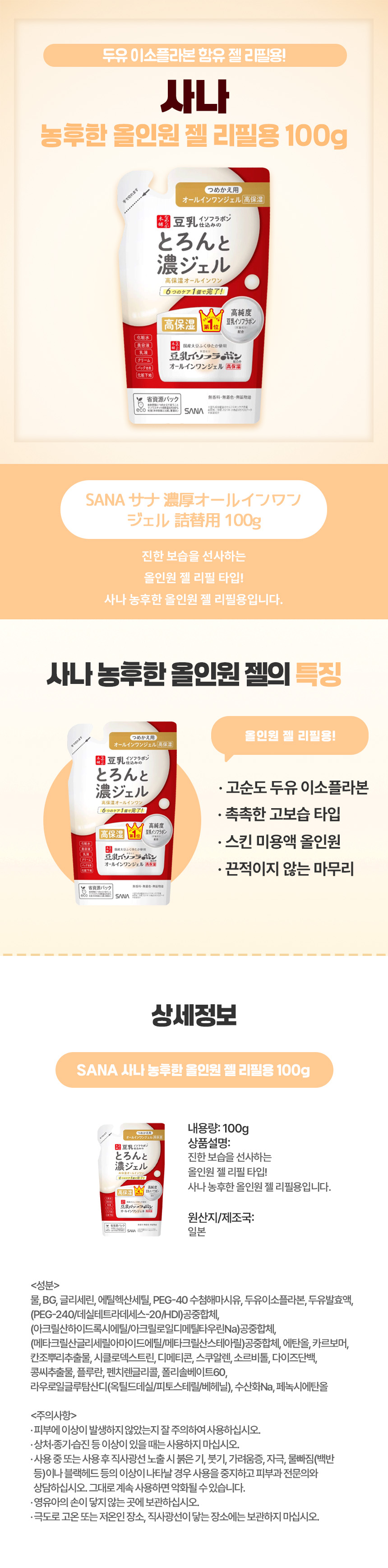 SANA 사나 농후한 올인원 젤 리필용 100g