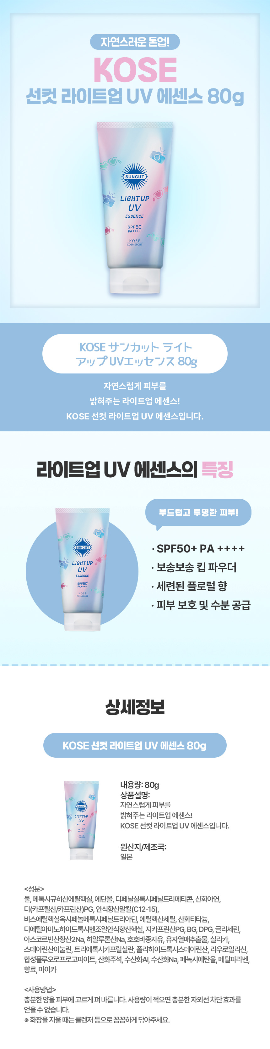 KOSE 선컷 라이트업 UV 에센스 80g