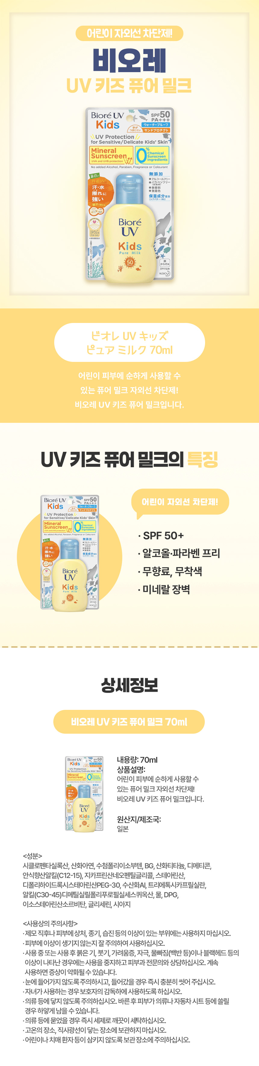 비오레 UV 키즈 퓨어 밀크( 70ml) (SPF50 PA+++)