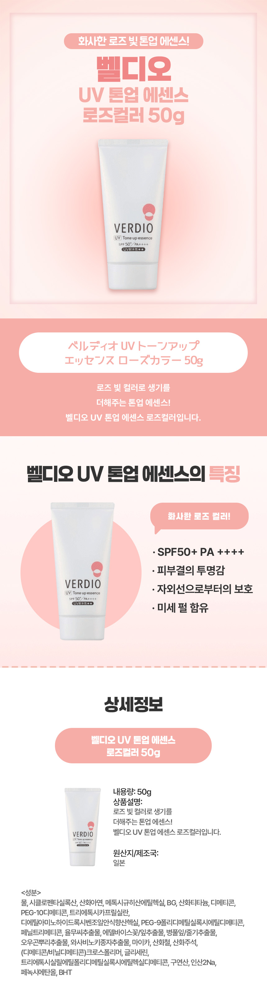 벨디오 UV 톤업 에센스 로즈컬러 50g