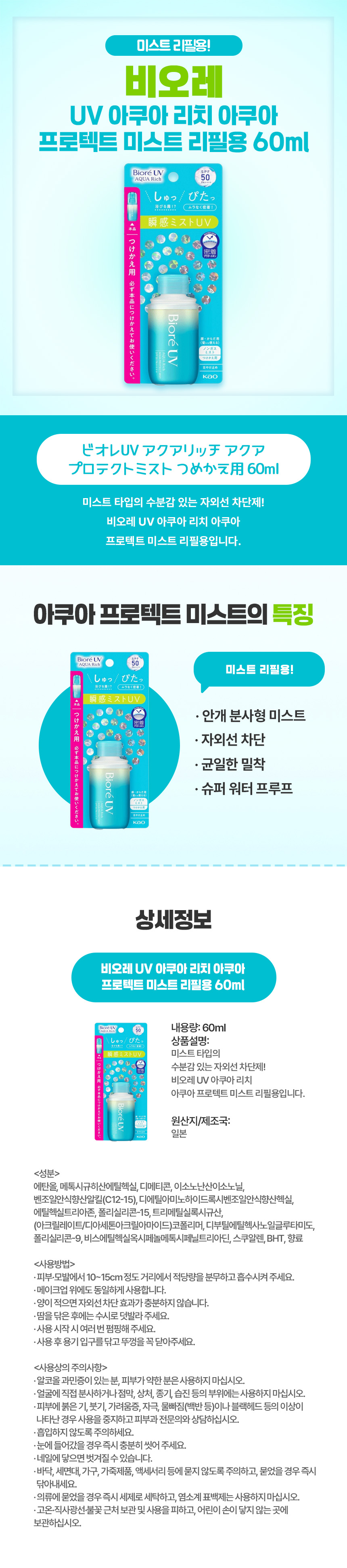 비오레UV 아쿠아 리치 프로텍트 미스트 리필용 60ml