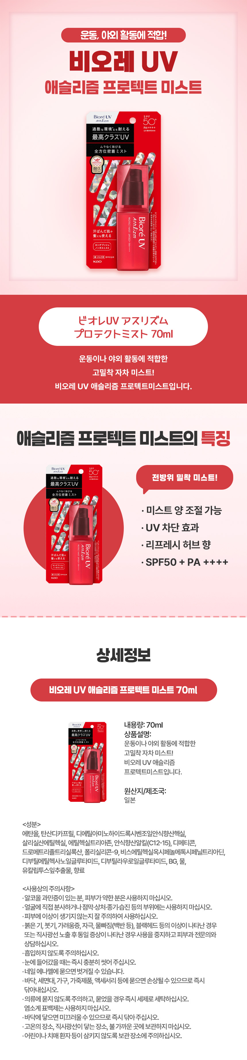 비오레 UV 애슬리즘 프로텍트미스트 70ml