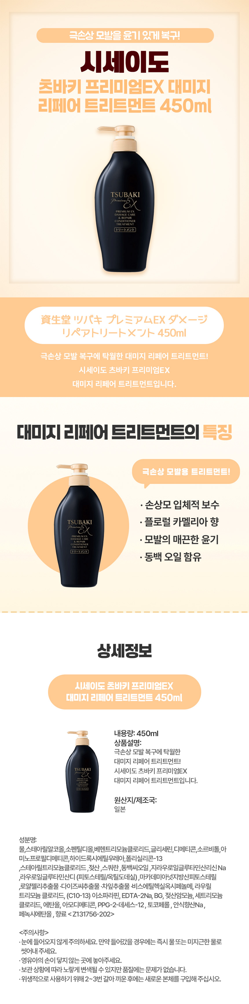 시세이도 츠바키 프리미엄EX 데미지 리페어 트리트먼트 450ml