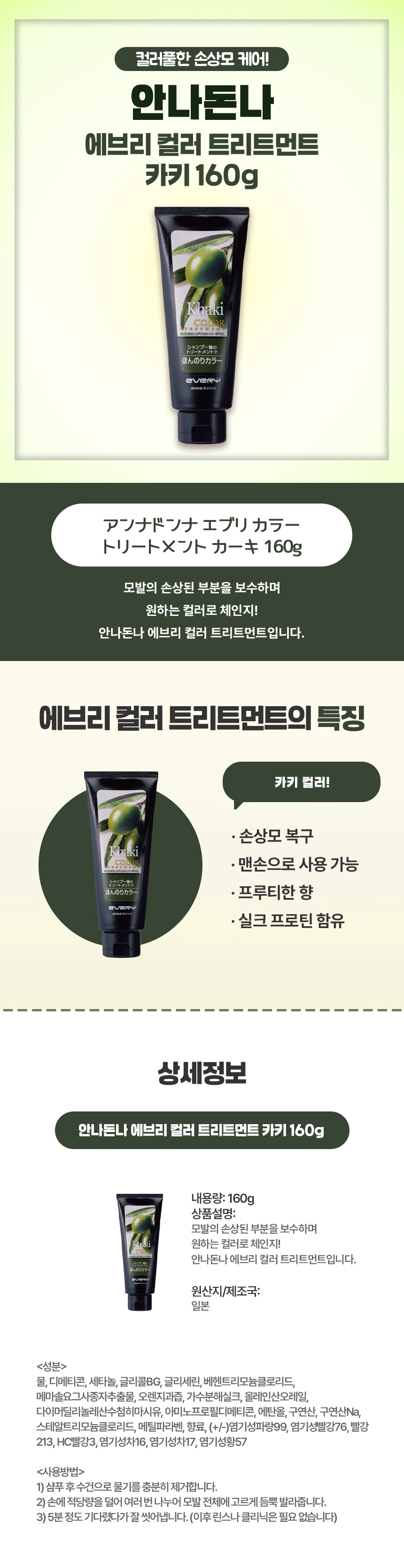안나돈나 에브리 컬러 트리트먼트 카키 160g