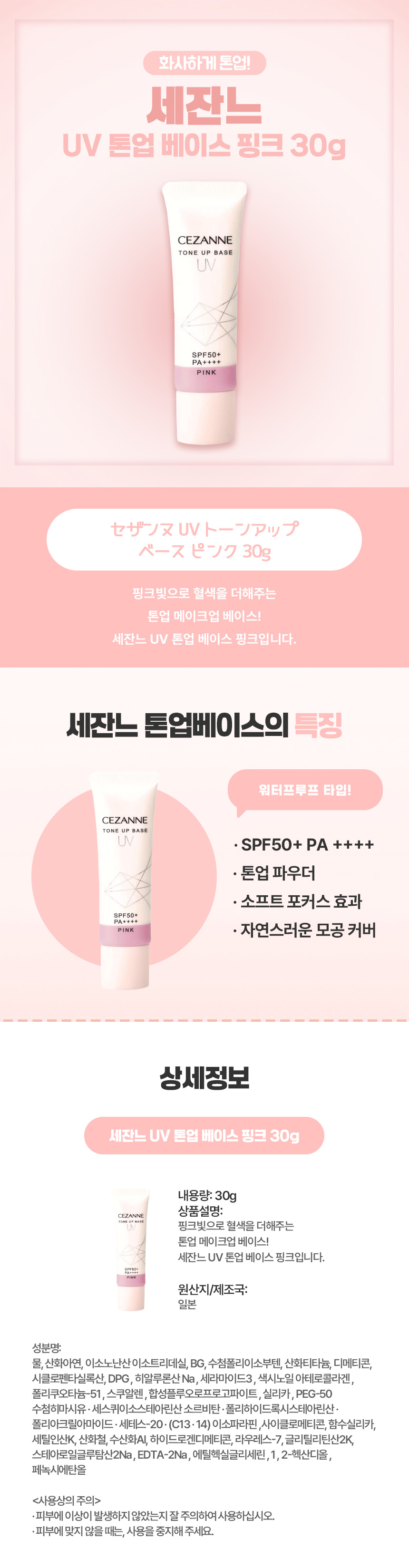 화사한 톤업 메이크업엔, 일본 직구 세잔느 UV 톤업 베이스 핑크