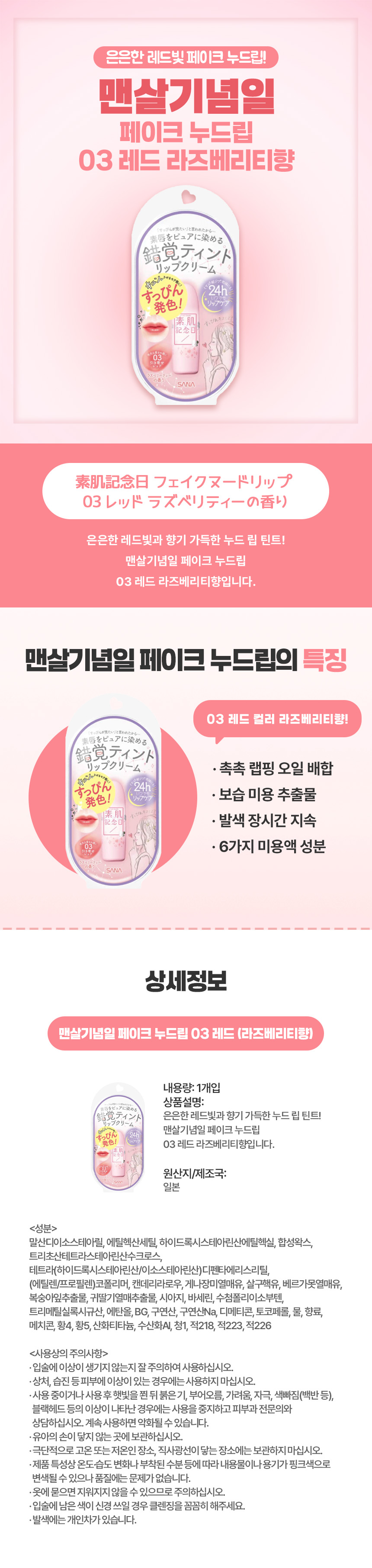 생기 있는 입술엔, 일본 직구 맨살기념일 페이크 누드립 레드 라즈베리티향