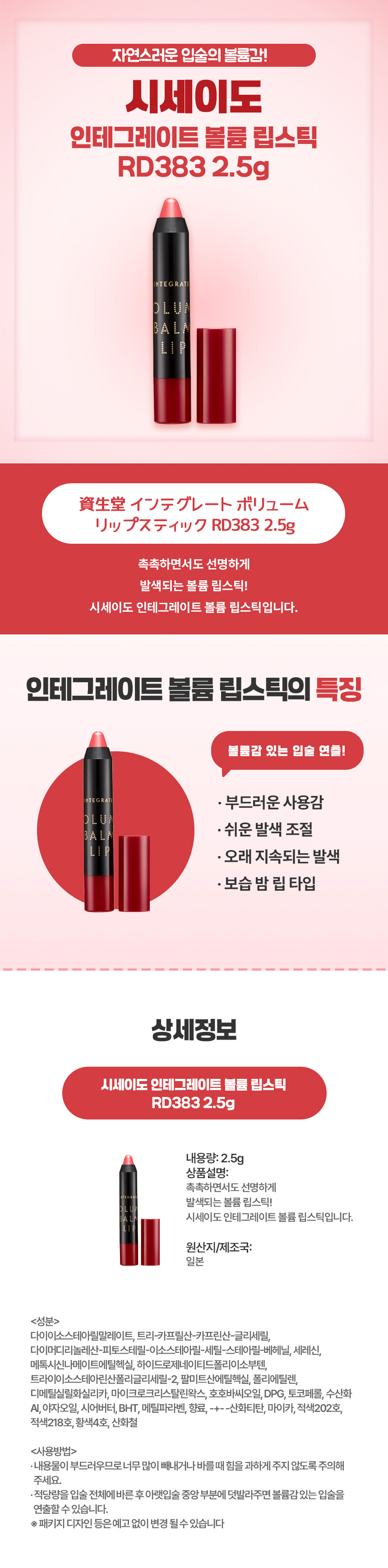 볼륨감 있는 립엔, 일본 직구 시세이도 인테그레이트 볼륨 립스틱 RD383