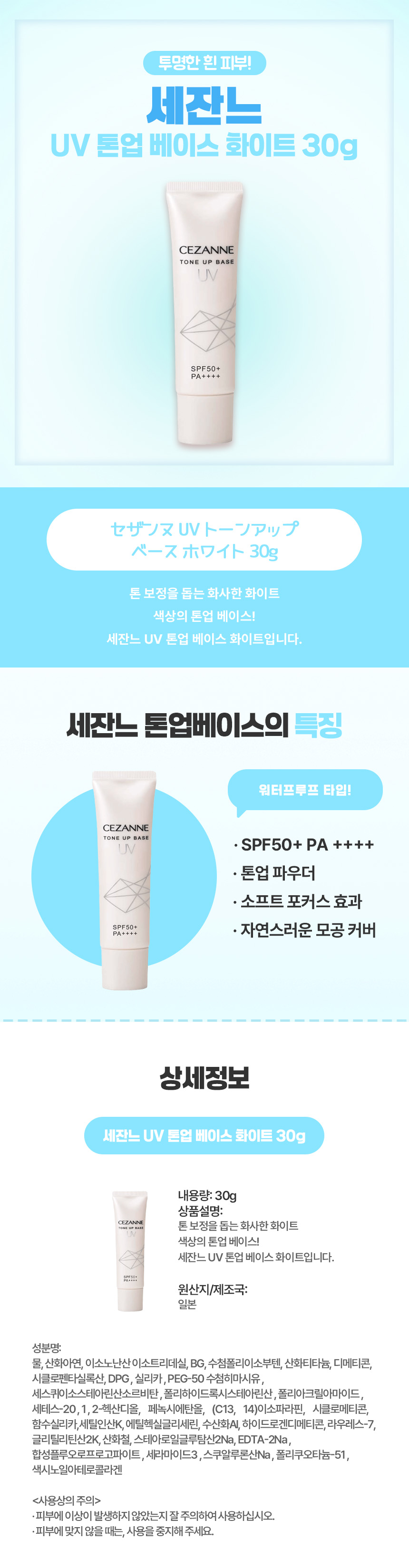 맑고 투명한 피부엔, 일본 직구 세잔느 UV 톤업 베이스 화이트
