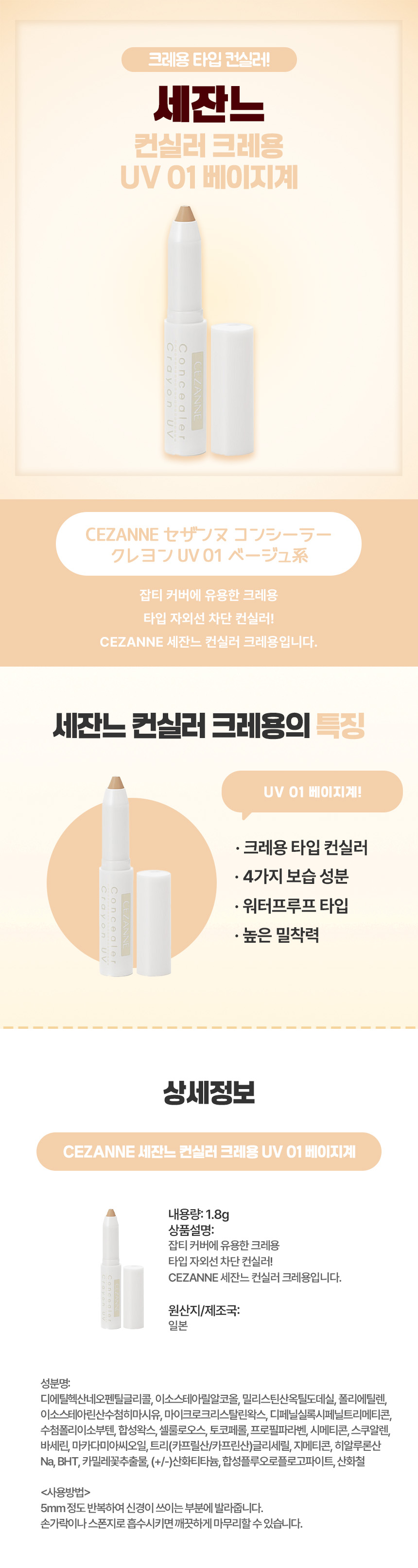 CEZANNE 세잔느 컨실러 크레용 UV 01 베이지계