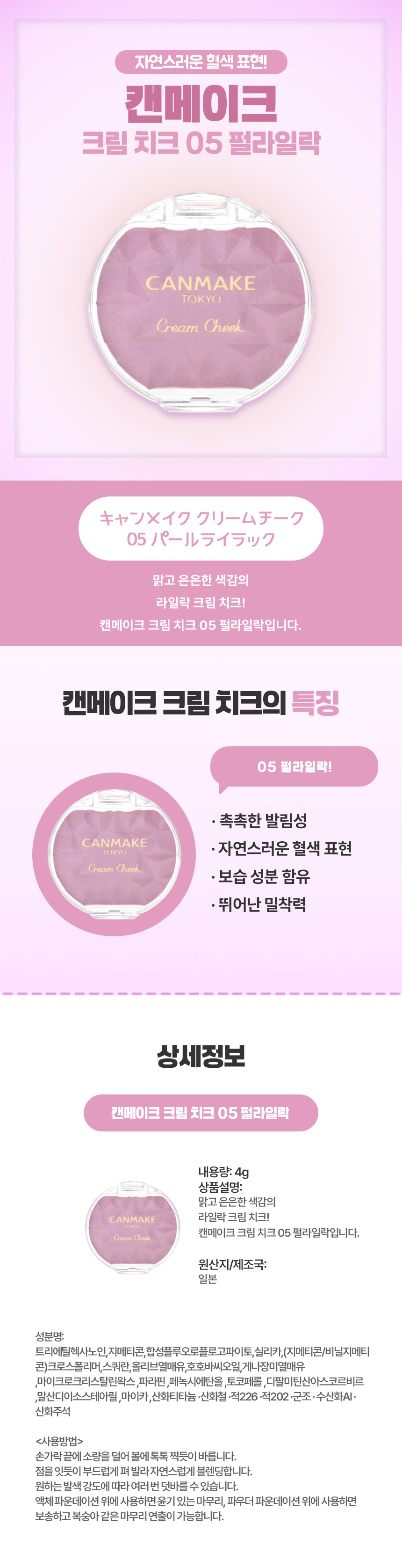 맑은 혈색엔, 일본 직구 캔메이크 크림 치크 펄라일락