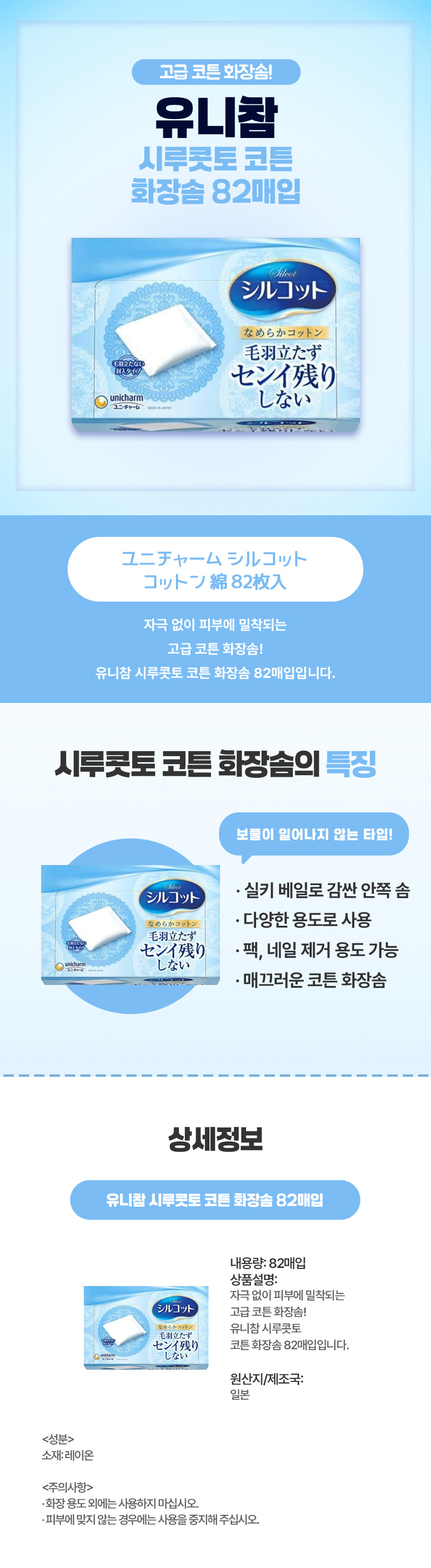 유니참 시루콧토 코튼 화장솜 82매입