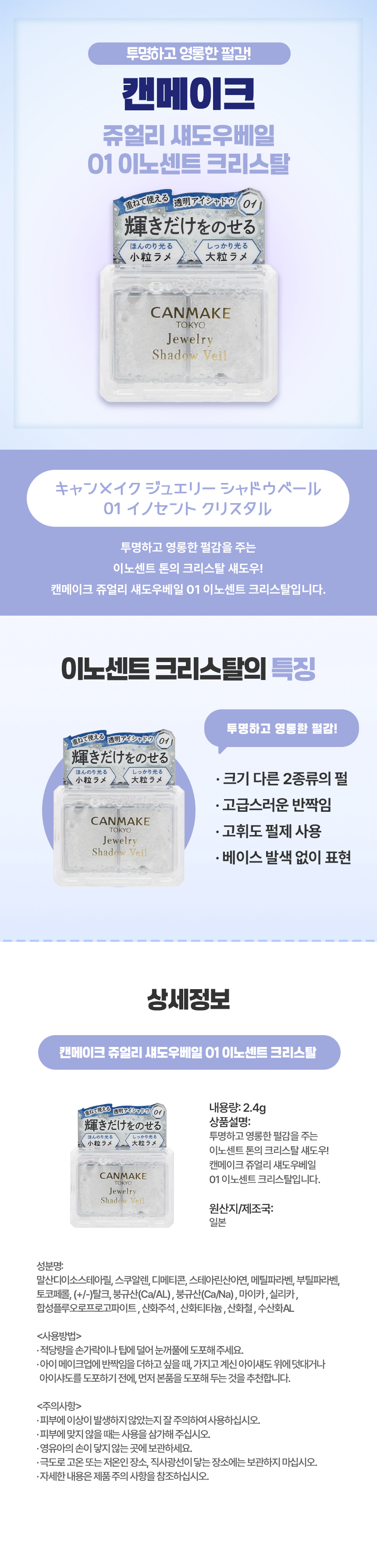 맑은 눈빛엔, 일본 직구 캔메이크 쥬얼리 섀도우베일 이노센트 크리스탈