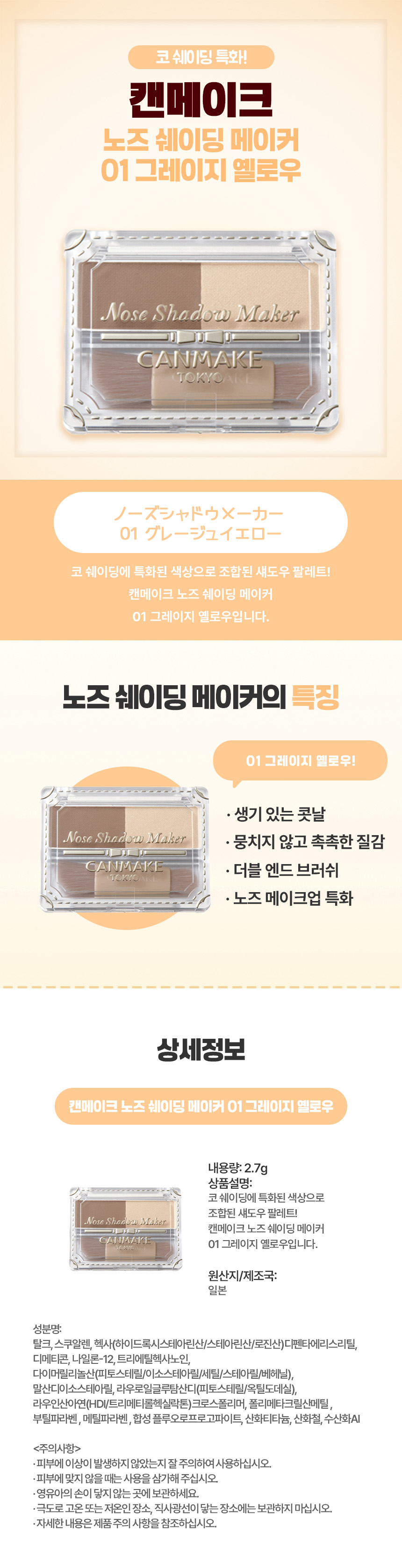 자연스러운 쉐딩이 필요할 땐, 일본 직구 캔메이크 노즈 쉐이딩 메이커 01 그레이지 옐로우