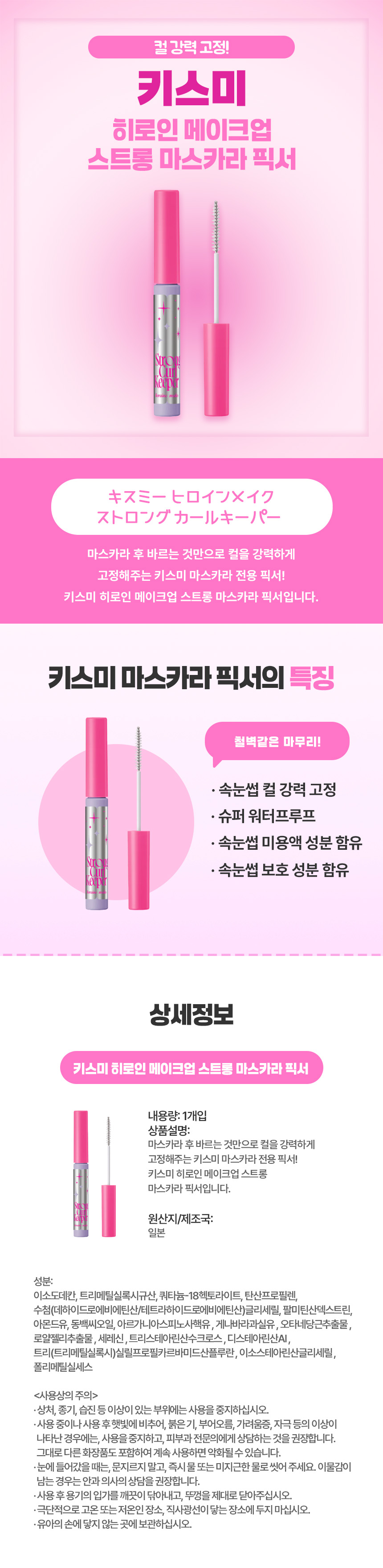 강력한 컬 고정엔, 일본 직구 키스미 히로인 메이크업 스트롱 마스카라 픽서