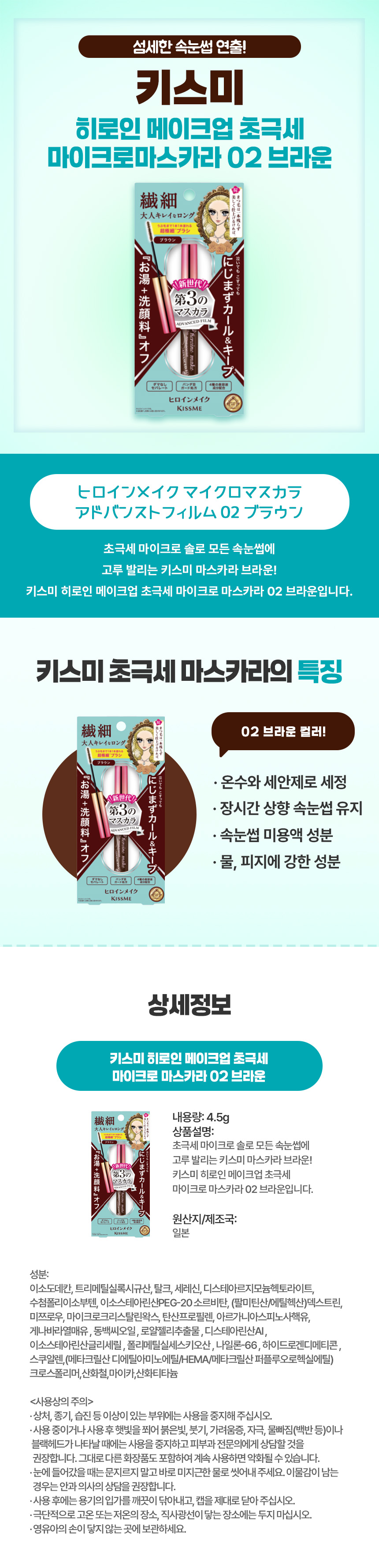 자연스러운 또렷함엔, 일본 직구 키스미 히로인 메이크업 초극세 마이크로 마스카라 02 브라운