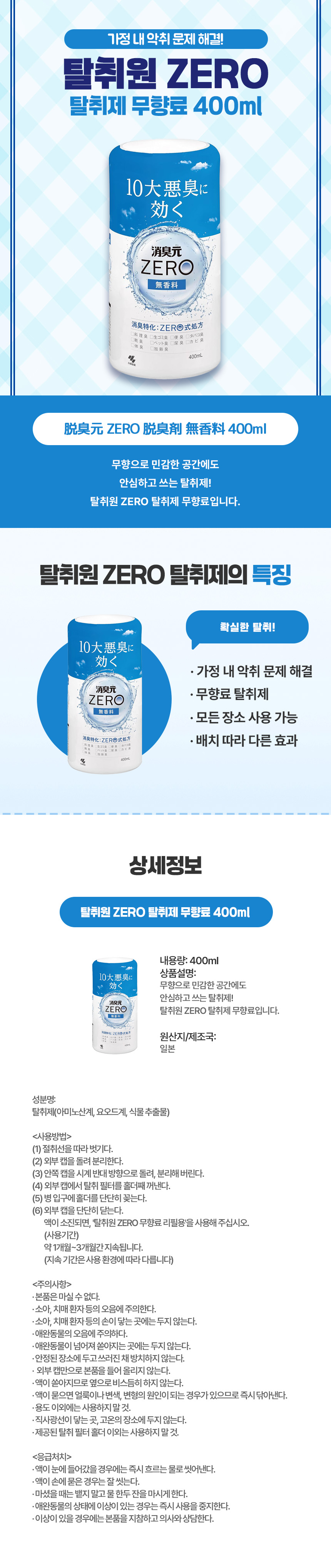 탈취원 ZERO 탈취제 무향료 400ml