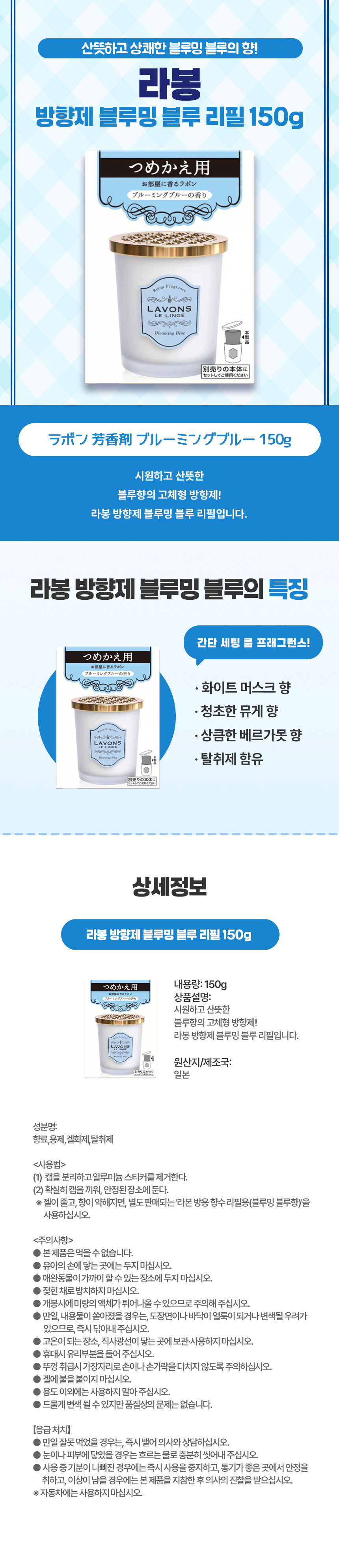 차 안을 산뜻하게 채워주는, 일본 직구 라봉 블루밍 블루 방향제 리필 150g