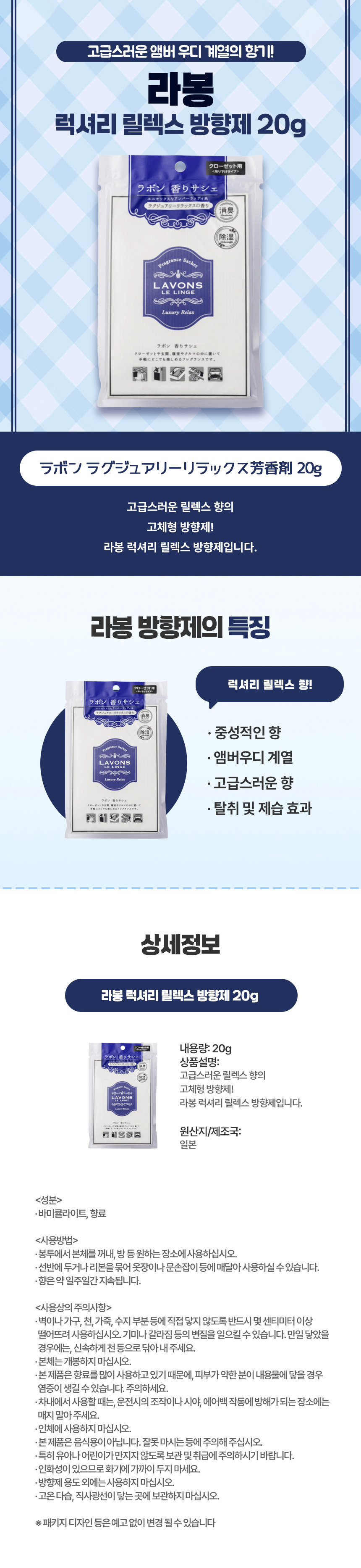 은은하게 공간을 감싸는, 일본 직구 라봉 럭셔리 릴렉스 방향제 20g