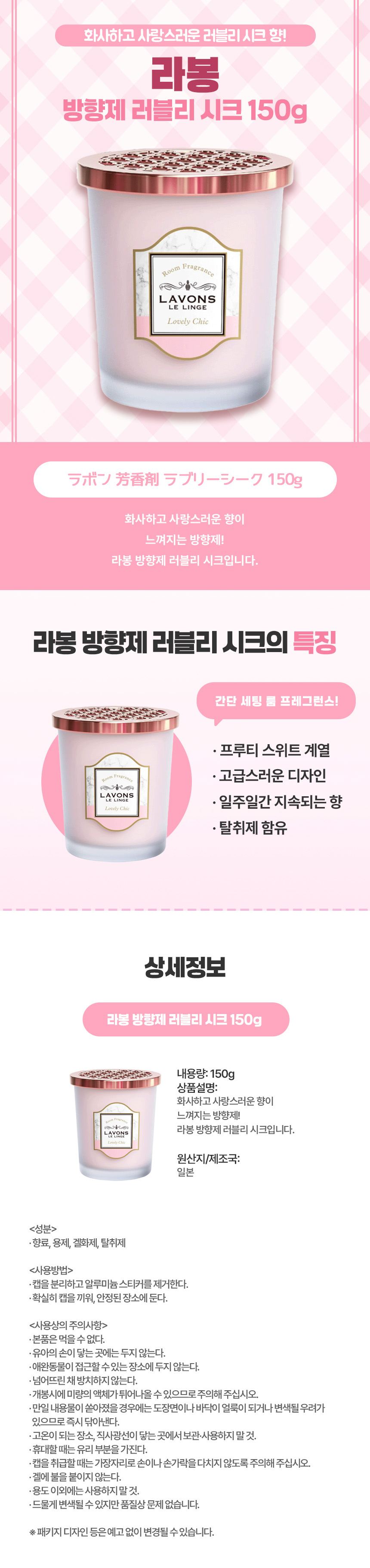 고급스러운 감각이 묻어나는, 일본 직구 라봉 러블리 시크 방향제 150g