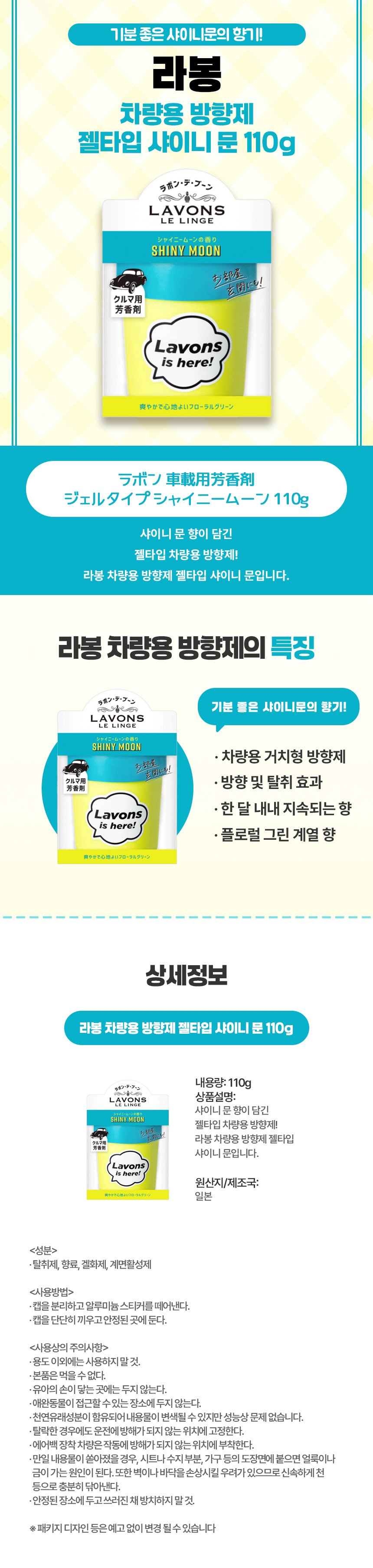 차량 내부를 화사하게, 일본 직구 라봉 젤타입 차량용 방향제 샤이니문