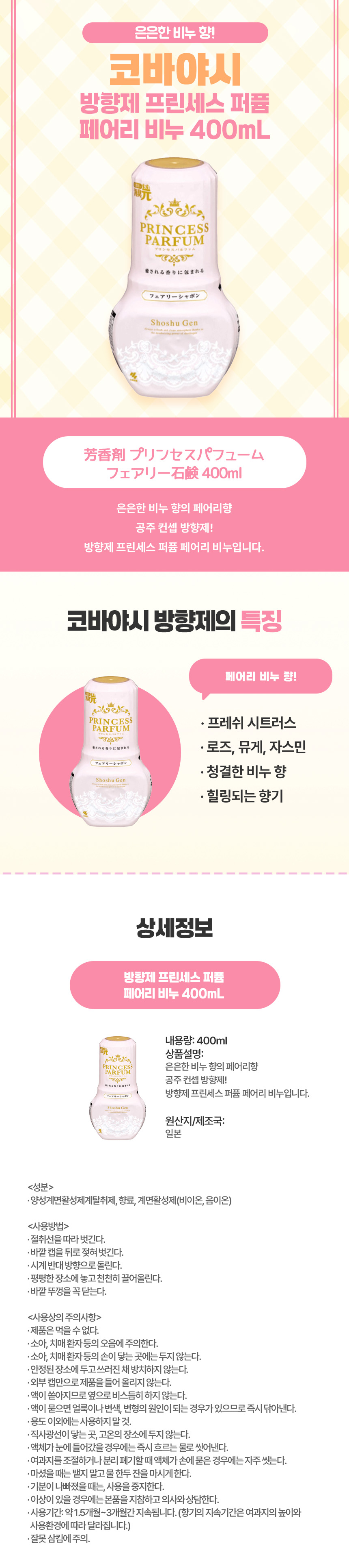 방향제 프린세스 퍼퓸 페어리 비누 400mL