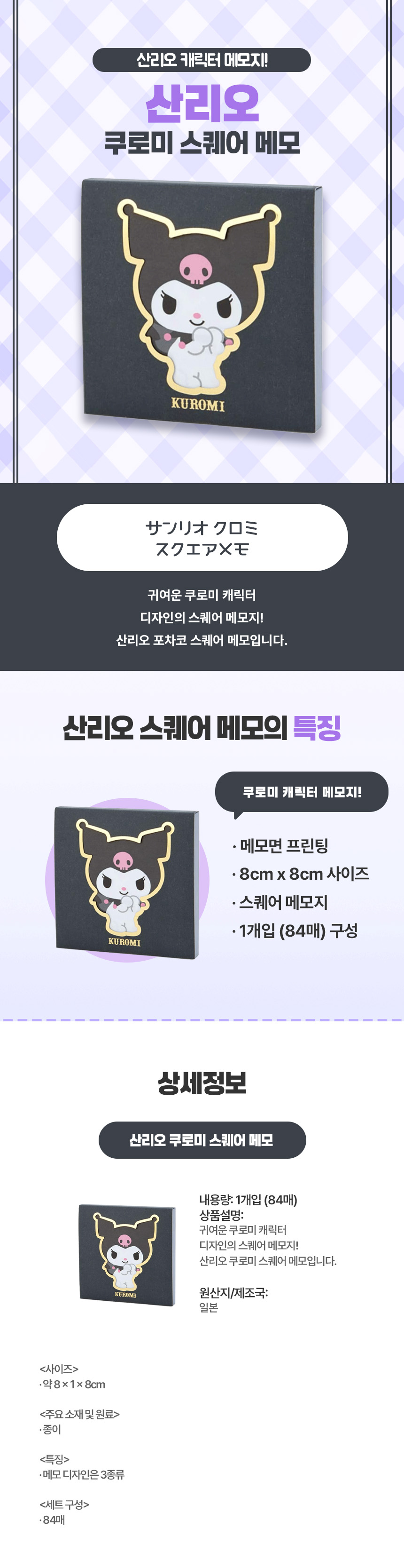 개성 있는 매력이 담긴, 일본 직구 산리오 쿠로미 스퀘어 메모