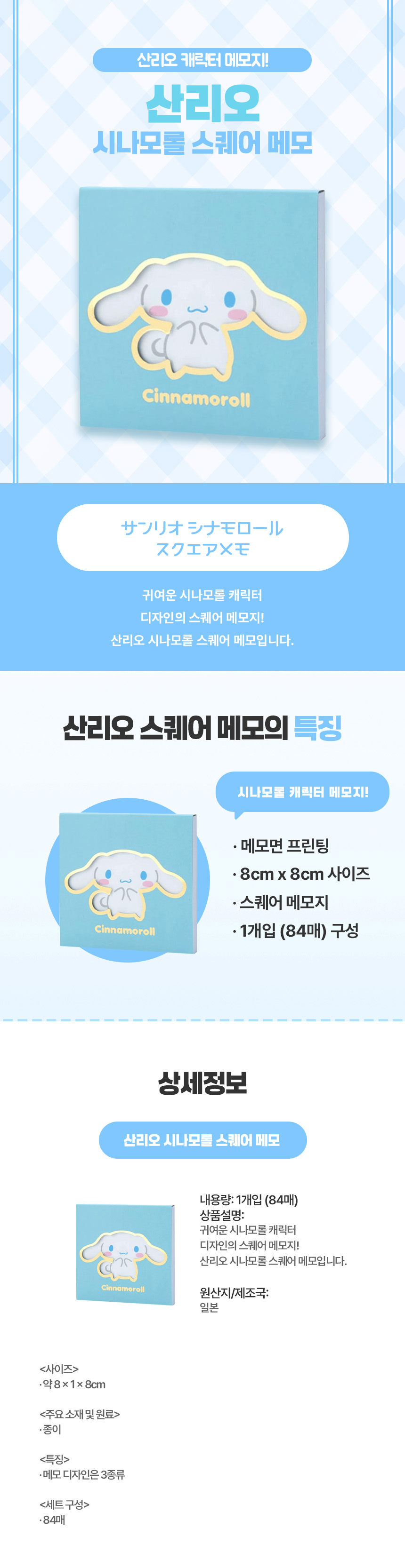 상큼한 블루톤의, 일본 직구 산리오 시나모롤 스퀘어 메모