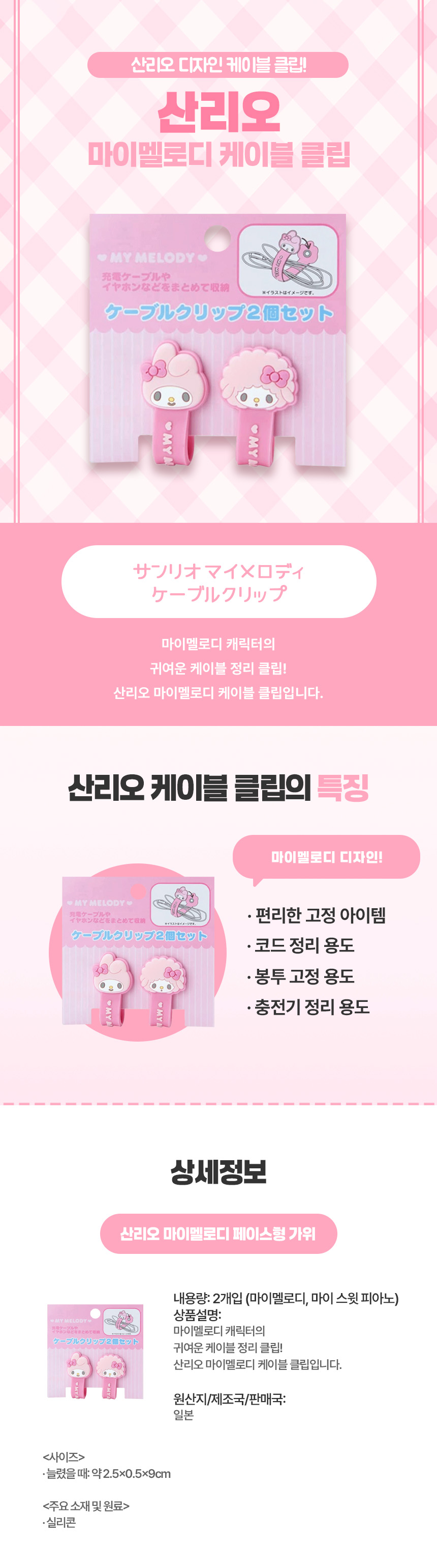 책상 위를 깔끔하게, 일본 직구 산리오 마이멜로디 케이블 클립