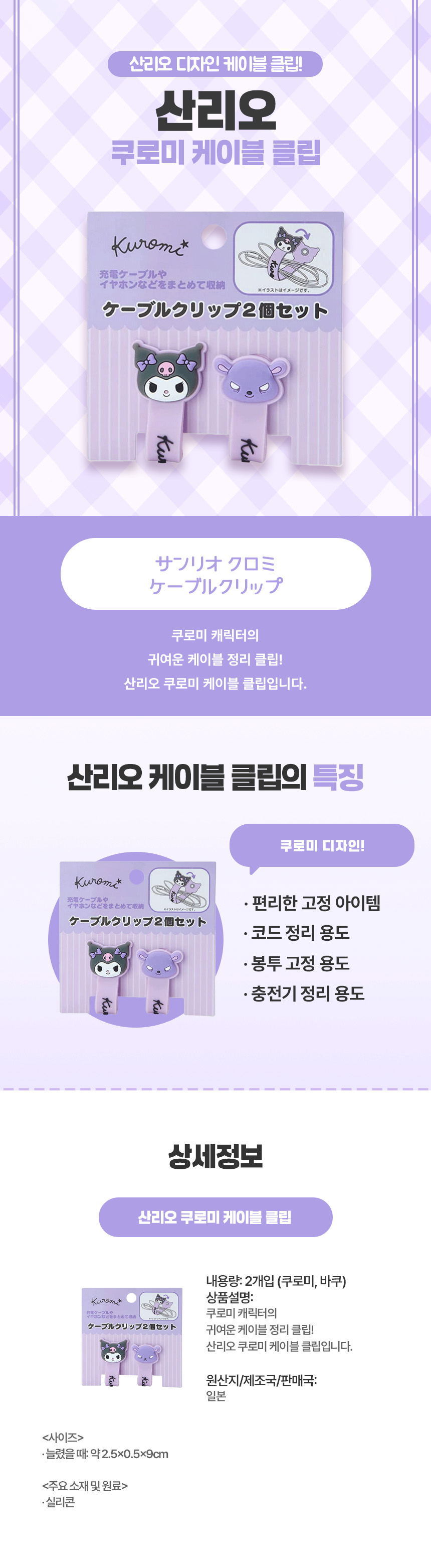 개성 있는 디자인, 일본 직구 산리오 쿠로미 케이블 클립