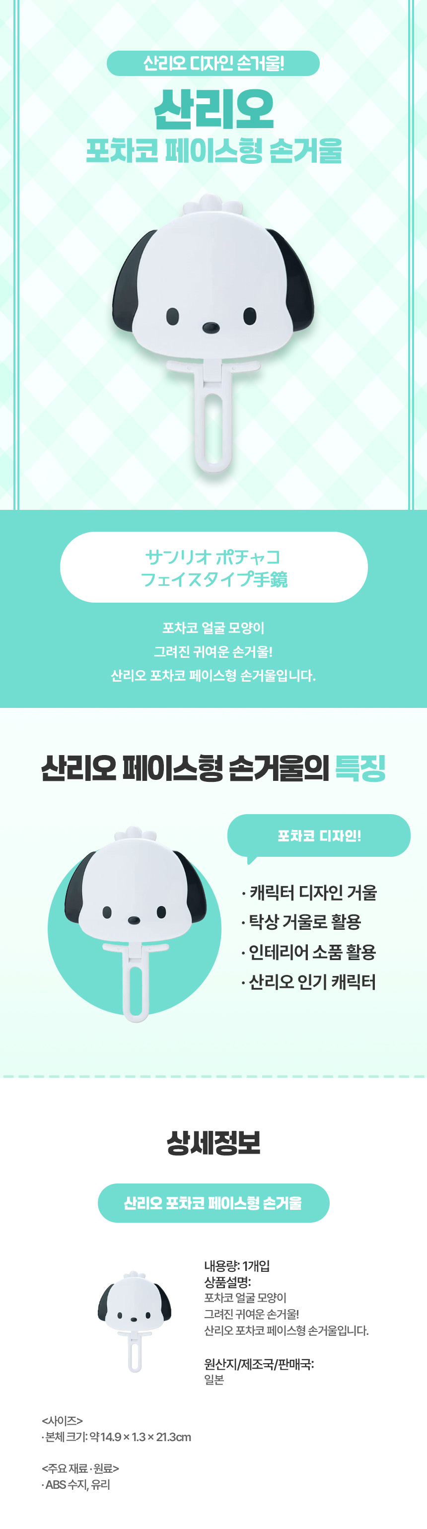 휴대하기 좋은 깜찍한, 일본 직구 산리오 포차코 페이스형 손거울