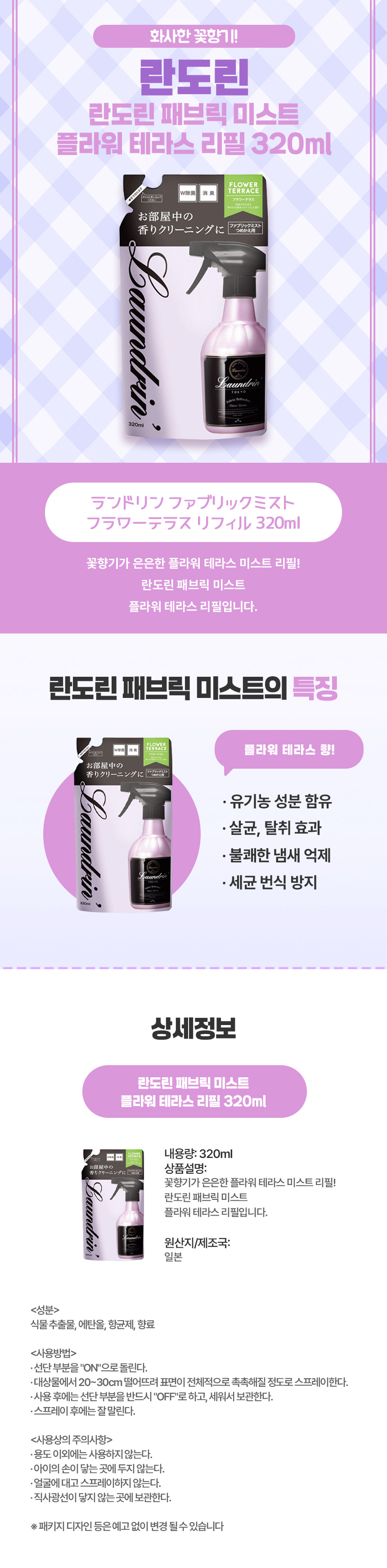 화사한 향이 오래 지속되는 일본 직구 란도린 플라워 테라스 미스트 리필