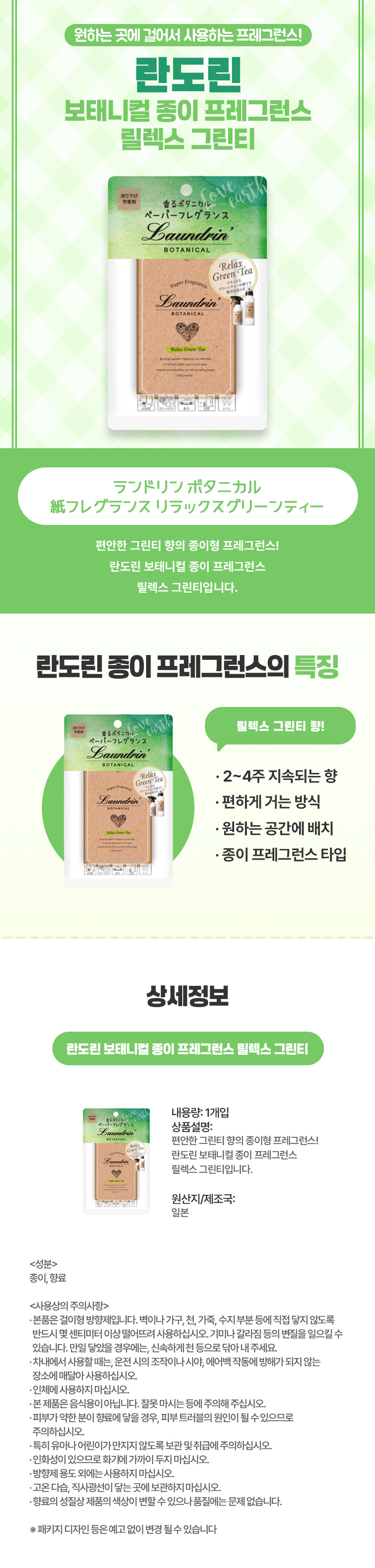 산뜻하고 편안한 일본 직구 란도린 보태니컬 릴랙스그린티 종이 방향제
