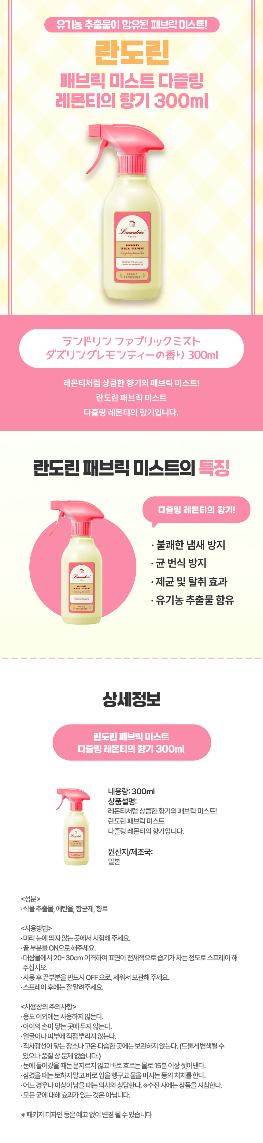 상큼한 레몬티 향의 일본 직구 란도린 다즐링 레몬티 패브릭 미스트