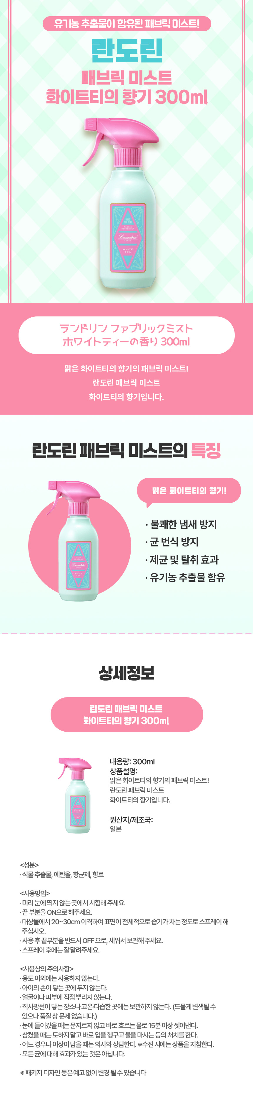 부드럽고 깔끔한 일본 직구 란도린 화이트티 패브릭 미스트