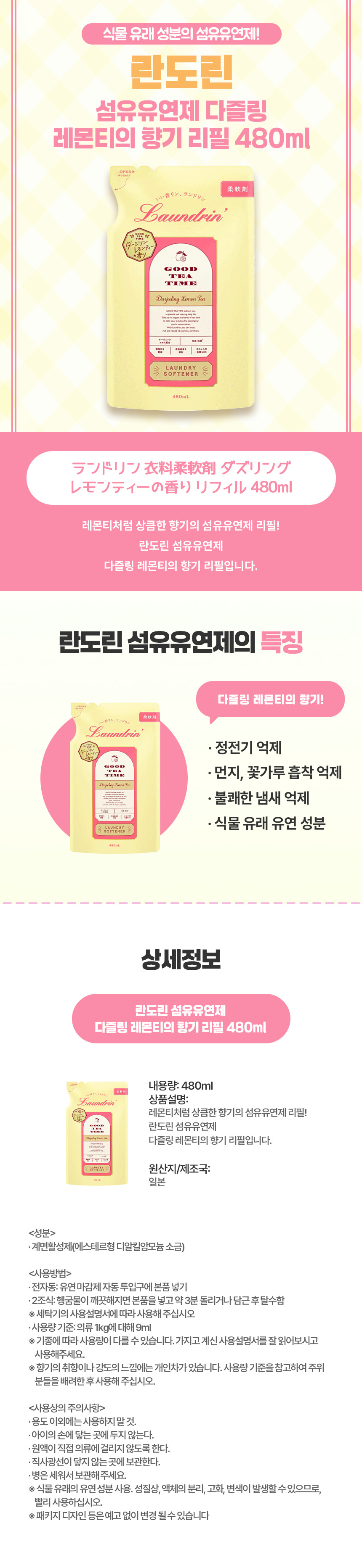 상큼한 레몬티 향이 오래가는 일본 직구 란도린 다즐링 레몬티 섬유유연제 리필