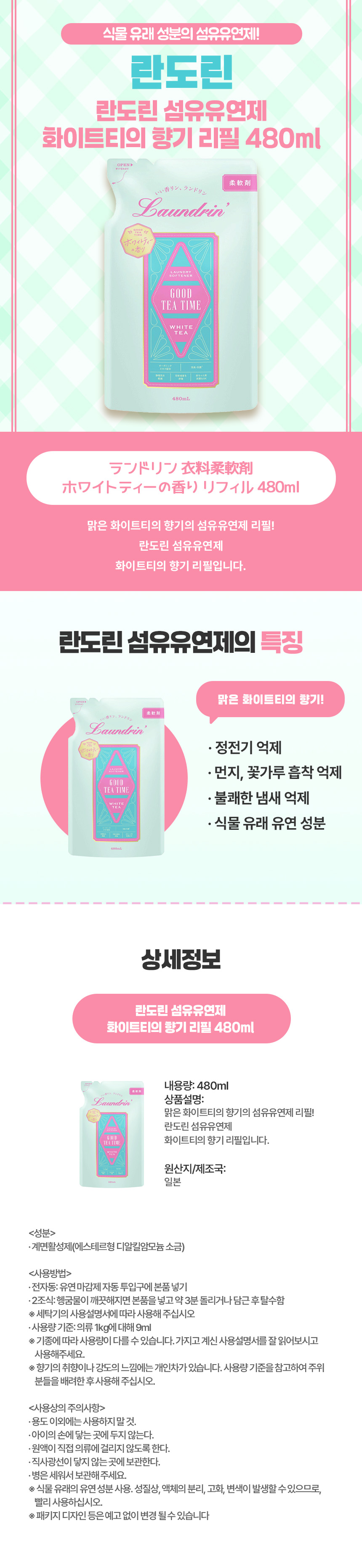 맑고 청아한 일본 직구 란도린 화이트티 섬유유연제 리필
