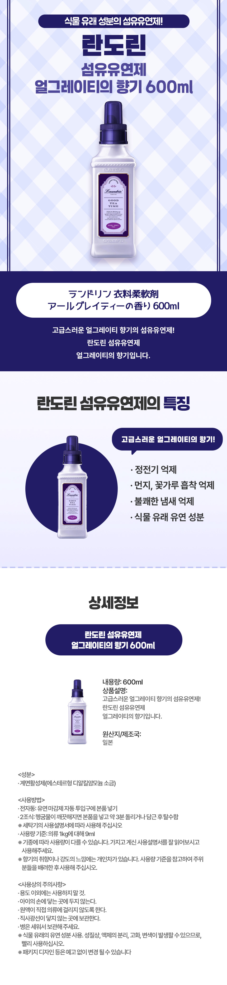 란도린 섬유유연제 얼그레이티의 향기 600ml