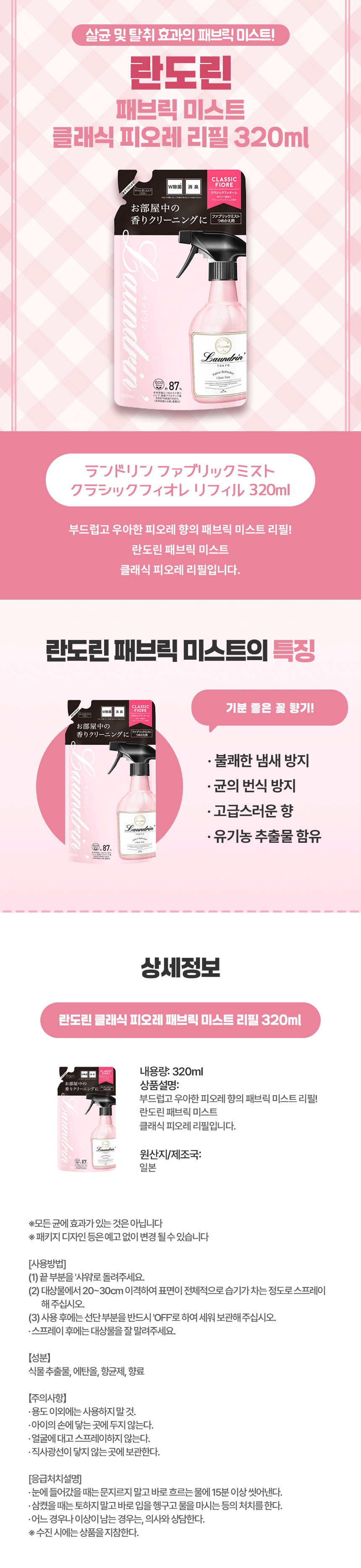 섬세한 플로럴 향의 일본 직구 란도린 클래식 피오레 패브릭 미스트 리필