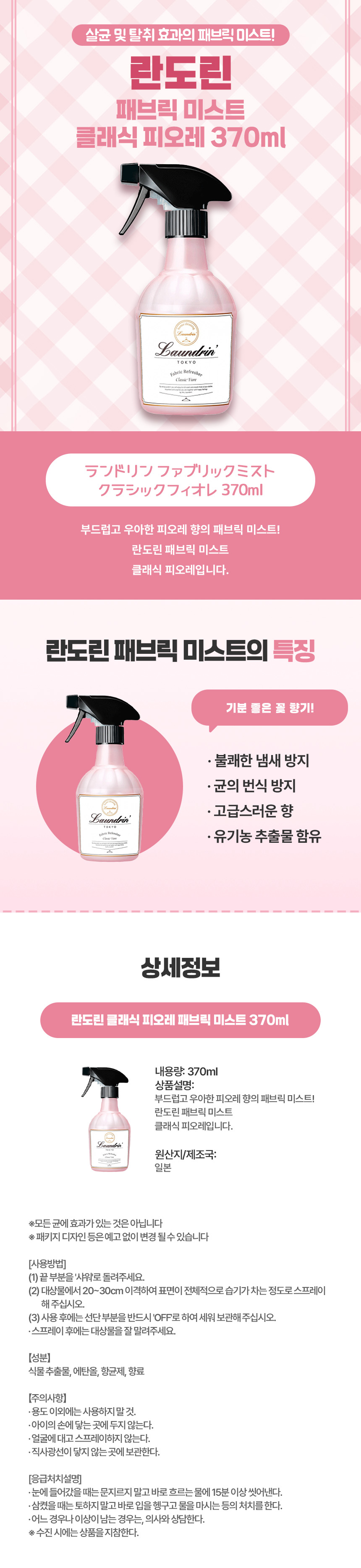 란도린 클래식 피오레 패브릭 미스트 370ml