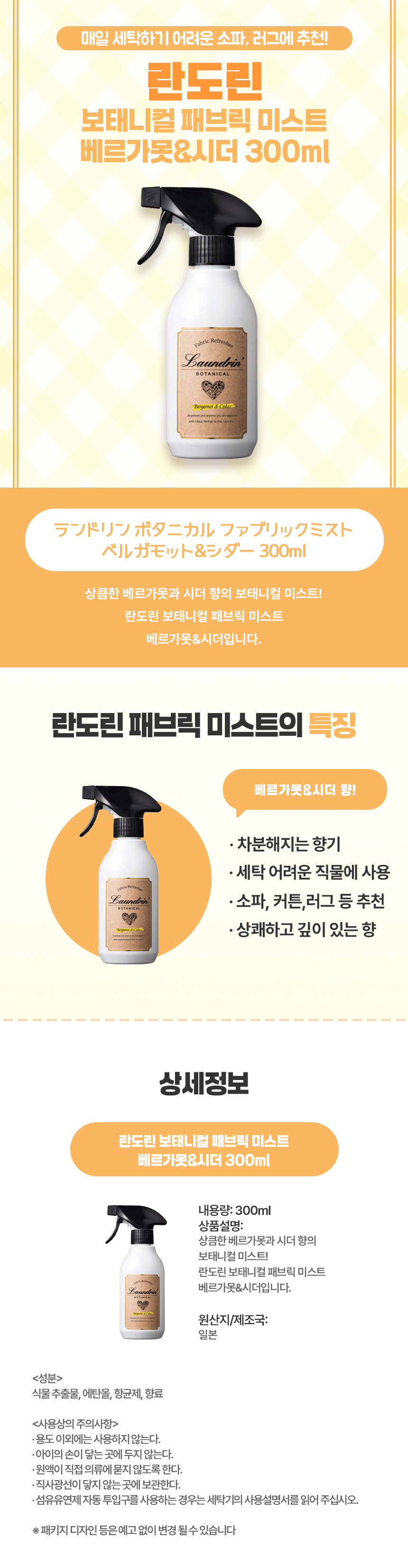 란도린 보태니컬 패브릭 미스트 베르가못&시더 스프레이 300ml