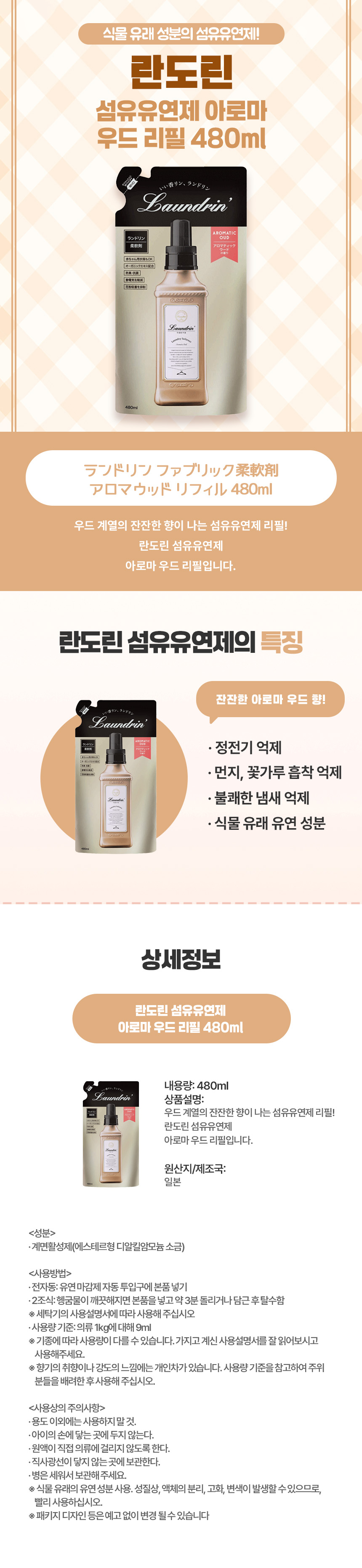 차분한 감각의 일본 직구 란도린 아로마 우드 섬유유연제 리필