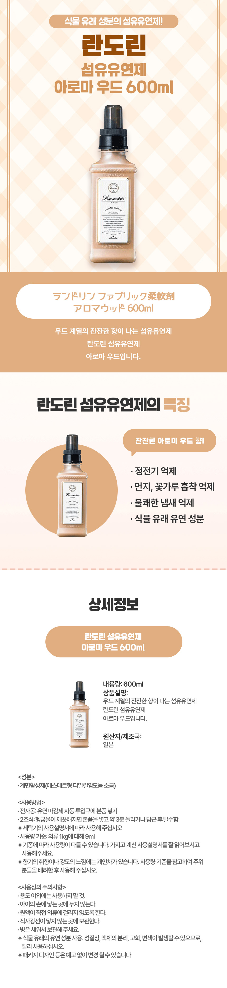 차분한 우드 향의 일본 직구 란도린 아로마 우드 섬유유연제 본품