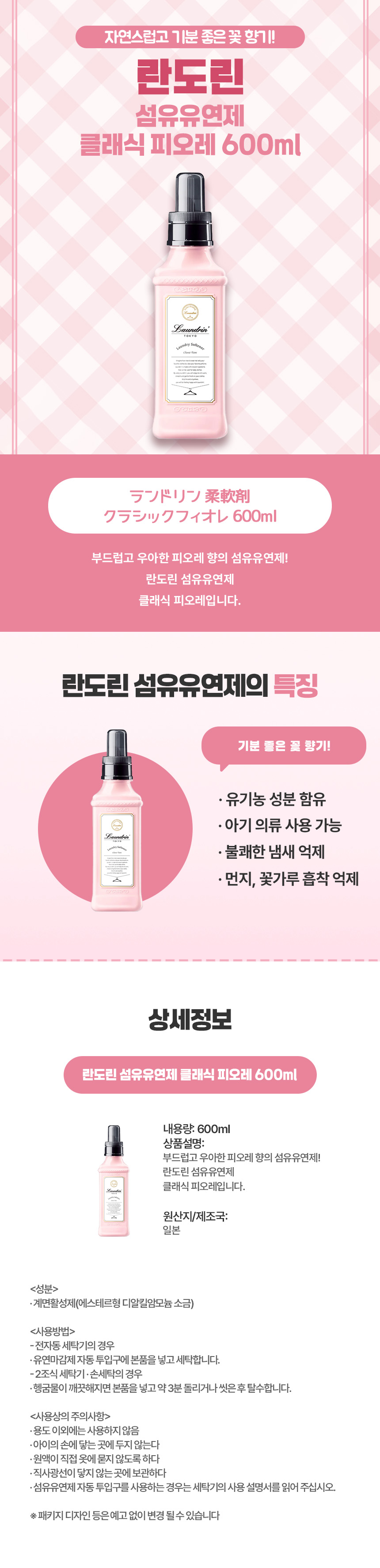 섬세하고 우아한 일본 직구 란도린 클래식 피오레 섬유유연제 본품