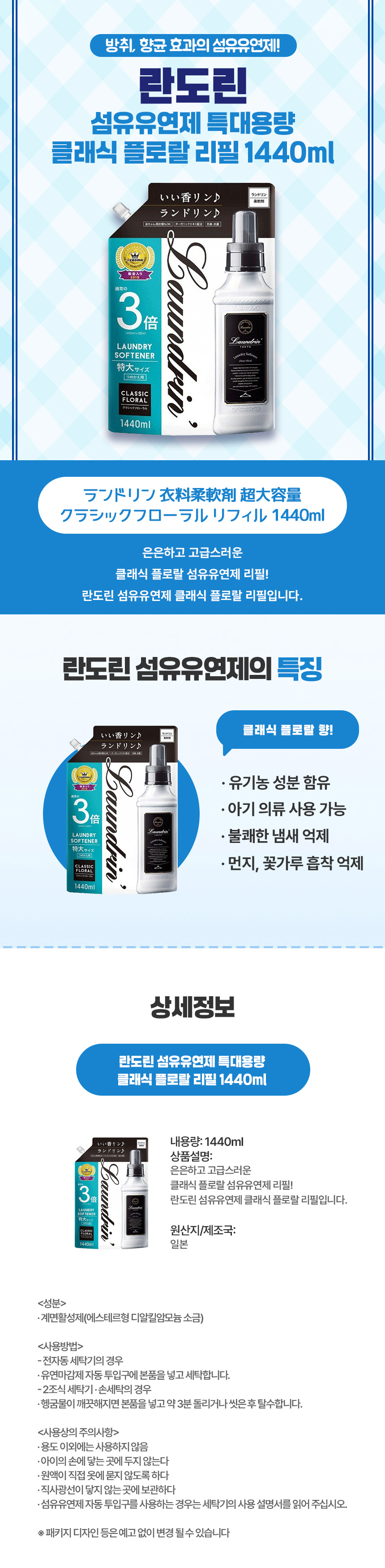 특대용량으로 오래 쓰는 일본 직구 란도린 클래식 플로랄 섬유유연제 리필
