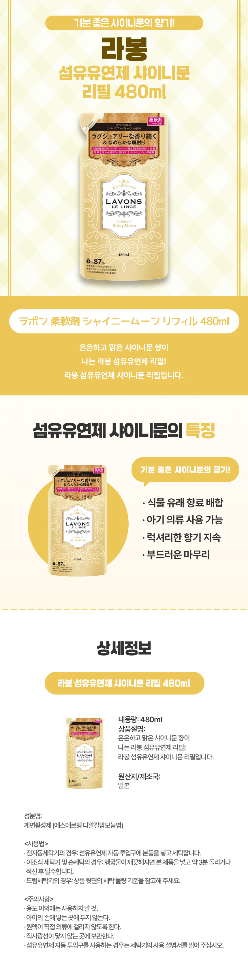 은은한 샤이니문 향의 일본 직구 라봉 섬유유연제 리필