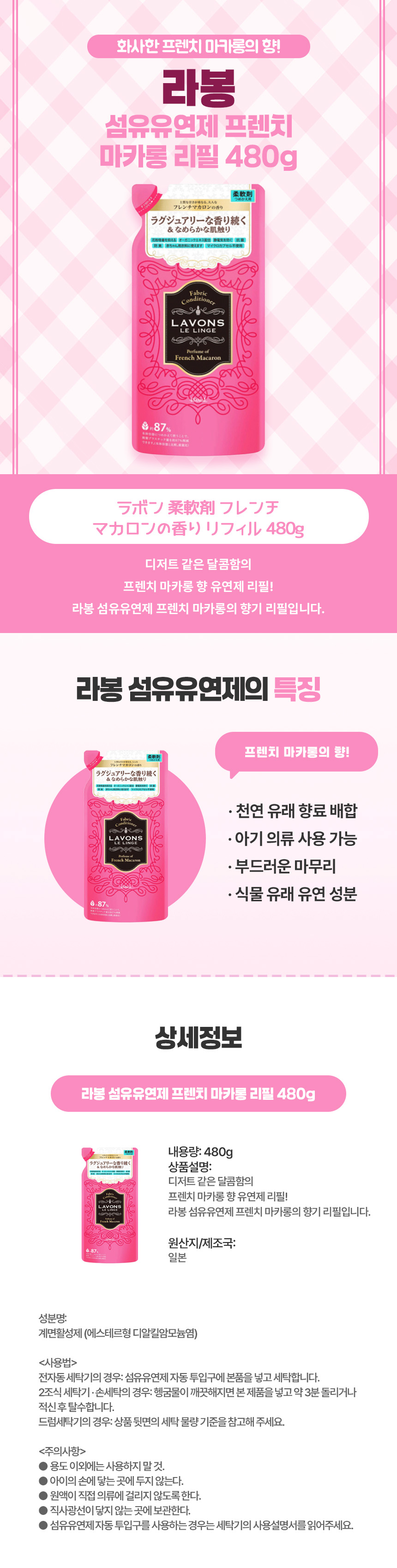 달콤한 마카롱 향이 나는 프렌치 스타일 유연제 리필