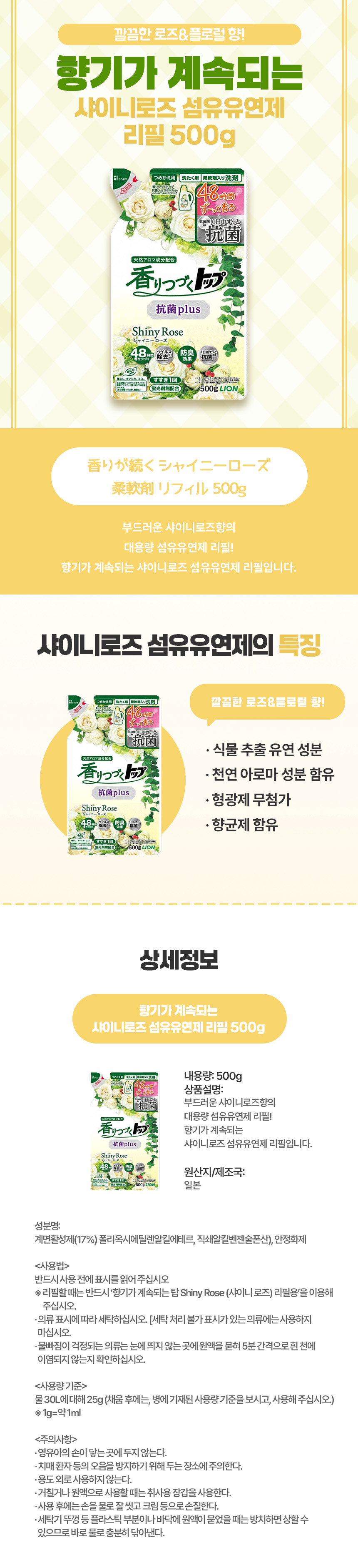 향기가 계속되는 샤이니로즈 섬유유연제 리필 500g