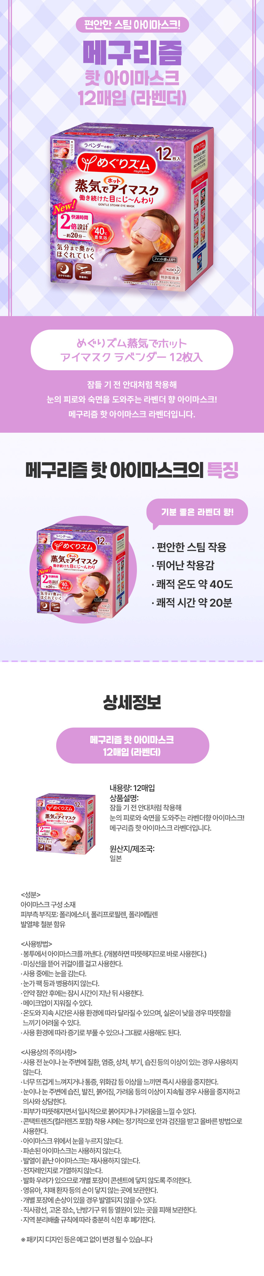 메구리즘 핫 아이마스크 12매입 (라벤더)