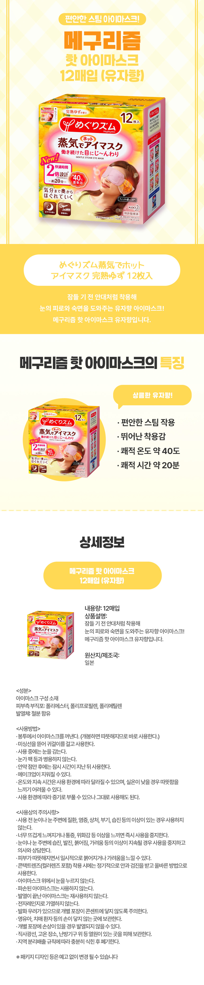 메구리즘 핫 아이마스크 12매입 (유자향)