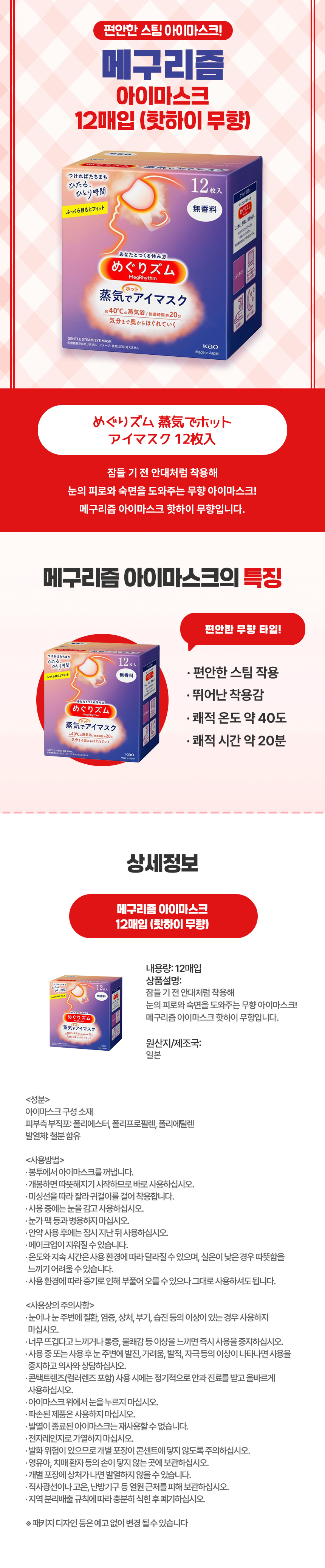 메구리즘 아이마스크 12매입 (핫하이 무향)